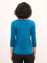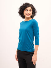 - The 3/4th length sleeves and boat neck design add a touch of elegance to this otherwise casual top.