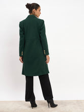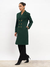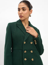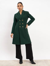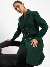 - Double-breasted longline design with a polka printed lining for a chic contrast
