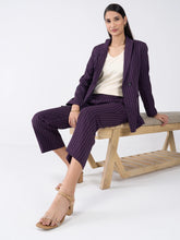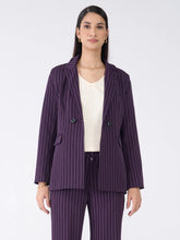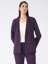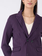 Bold Striped Double Breasted Blazer-Purple & White Stripe