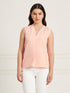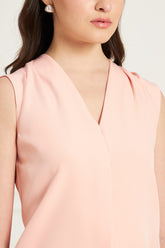 An easy going, slip-on top in light peach Features a V-neckline, pleat detailing at the shoulder and center front, and short side slits Crafted in moss lycra to offer a premium finish Tuck it in a pair of wide legged trousers Accessorize with a chic bracelet stack.