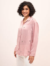 Champagne Night Embellished Button Down Shirt-Blush Pink