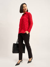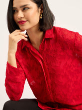 Charmed Drop Shoulder Button Down Shirt - Red