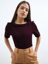 Crafted in a textured maroon fabric that’s soft, stretchable, and smooth on the skin