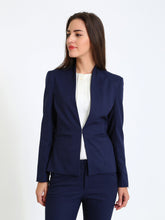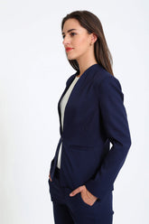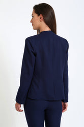 Clean straight-front blazer with a sleek, sharp silhouette