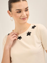 Doodle Tee-Off White Applique T-Shirt - Off White & Black