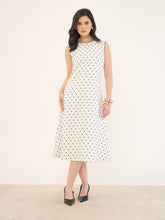 - Polka print midi-length dress designed in a flattering fit-and-flare silhouette