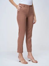 Earnest Striped Mid Rise Pants-Brown Stripe