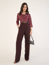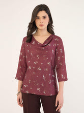 Emmy Printed Cowl Neck Top-Maroon