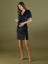 Erin Faux Wrap Velvet Dress-Black