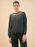 Round Neckline Full Length Bishop Sleeves Sequin Embellished Front Neckline
