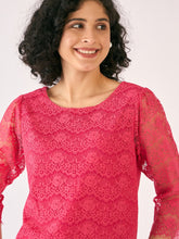 Evelina Boat Neck Lace Top-Coral Pink