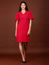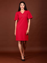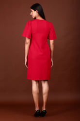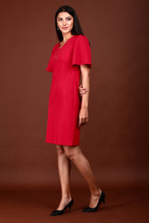 Evelyn Formal-Casual Flutter Sleeve Shift Dress - Red