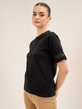 Eyelet Tee-Black Lace Insert T-Shirt - Black