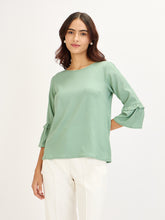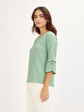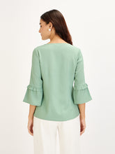 Fig Fizz-Mint Flounced Sleeves Top - Mint