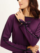 Forest-Dark Purple Tie-up Cuff Dress - Dark Purple