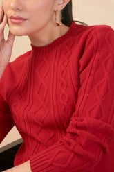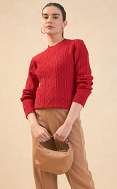 Irina Cable Knit Sweater-Red