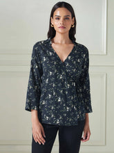 A chic wrap top in a rich floral print Features a collared V neckline, a side wrap tie-up, and 3/4th length sleeves Crafted in a lightweight rayon fabric to offer a comfortable fit and feel Team it up with straight trousers and strappy heels Elevate the look with statement hoops.