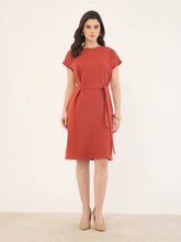 Juniper Drop Sleeve Belted Dress -Rust