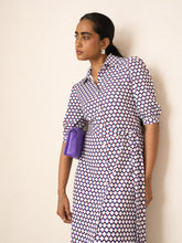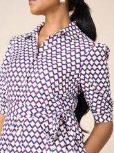- shirt dress with fabric belt in a geo print
