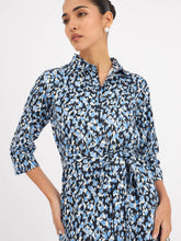 Lapis Tab Detail Belted Shirt Dress -Blue