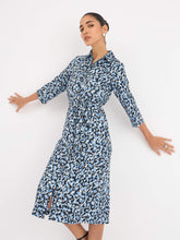 Abstract Print Belted Shirt Dress – Chic & Versatile