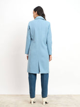 - Polka Printed Lining, Double-Breasted Coat in Pastel Blue β A timeless and elegant outerwear piece