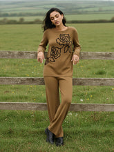 - Embroidered co-ord set featuring a boat neckline top with appliqué detailing