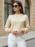 Crew Neckline Full Length Bishop Sleeves Lurex Blend Ribbed Trims