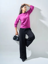 Crew Neckline Full Length Bishop Sleeves Ribbed Trims