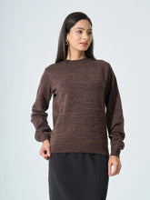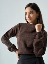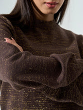Crew Neckline Full Length Bishop Sleeves Lurex Blend Ribbed Trims
