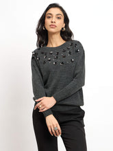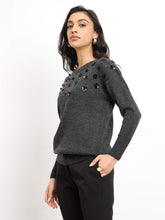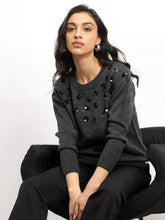 Marcelyn Embellished Round Neck Sweater - Dark Grey