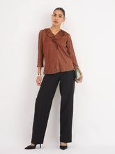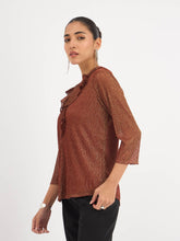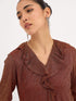 Midnight Kiss Ruffled Neckline Top - Rust
