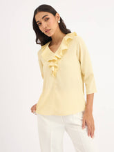 Midnight Kiss Ruffled Neckline Top-Yellow