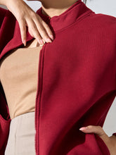 Mock High Neckline Front Zip Fastening Full Length Sleeves Side Pockets Ribbed Trims