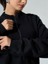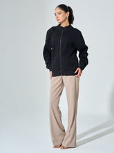 Mock High Neckline Front Zip Fastening Full Length Sleeves Side Pockets Ribbed Trims
