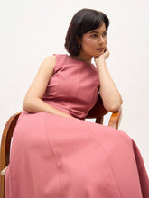 Moondel Panelled Detail Fit and Flare Dress-Rose Tan