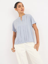 Mulled Wine Pleated Top - Dusty Blue