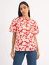 Myla Floral Pleated Neck Puff Sleeve Top - Red