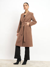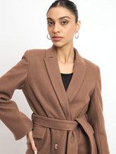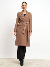 Nevara Double Breasted Longline Belted Coat - Caramel
