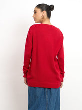Perla Embellished Round Neck Sweater - Red