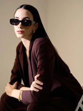 - A thoughtfully tailored, lined, single-breasted blazer in dark brown