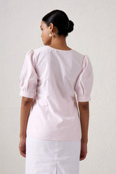 A dressy, straight fit top in a soft pink hue