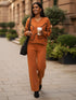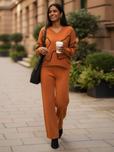 - Embellished co-ord set featuring a V-neckline top with appliqué detailing