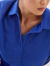 Solace Oversize Drop Shoulder Shirt-Cobalt Blue