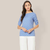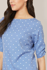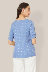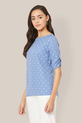 Spica Ruched sleeve polka Top - Blue