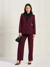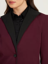 A loosely tailored, lined, single-breasted blazer in burgundy Features a contrasting peak lapel collar, a back vent, and full-length sleeves Crafted in moss lycra to offer a premium finish Style it as a pant suit Elevate the look with statement jewellery