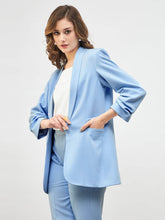 Spunky Ruched Sleeve Blazer -Sky Blue