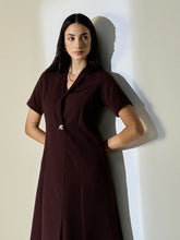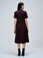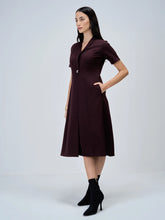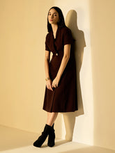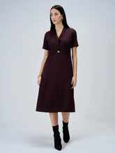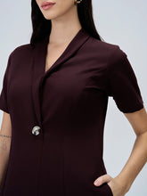 Stunning formal midi length dress in solid brown Comes with a shawl style collar half sleeves A large show button for a formal blazer look and a tich button detail on the inside for neck closure Team up the dress with block heels for a formal comfy sneakers for a casual look
