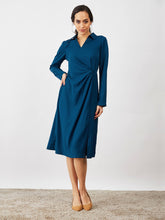 An artfully tailored, over-the-knee length dress in a rich, teal hue