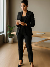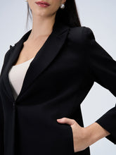 Single-breasted longline blazer in classic black with a lined finish